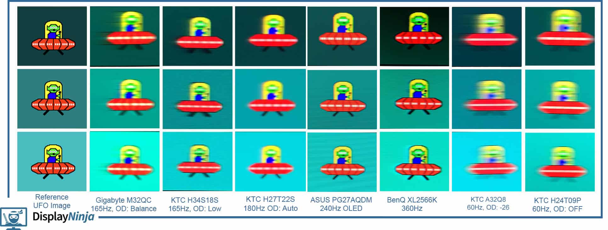 Here’s how it compares to some other displays in Blur Buster’s UFO ghosting test.