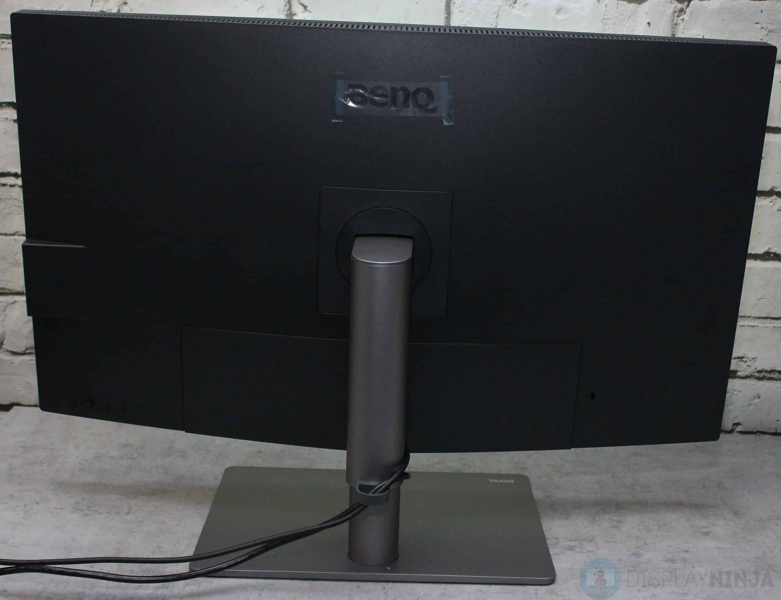 The base and stand of the BenQ PD3220U monitor are made of metal and are quite heavy and sturdy. The stand doesn’t take up a lot of your desk space as you can place items on it.