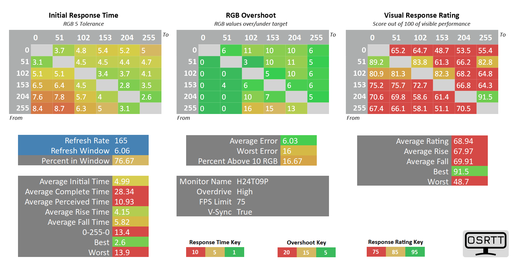 The KTC H24T09P has four response time overdrive modes: Off, Low, Middle and High.