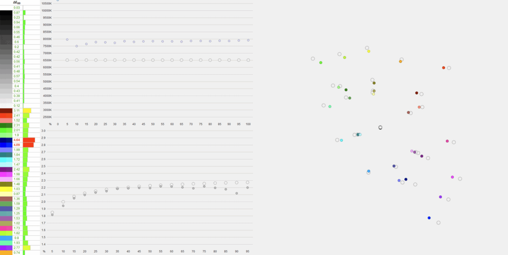 Gamma tracking has also improved to 2.22, the maximum Delta E is 1.23, and the average Delta E is just 0.34. You can download our ICC profile here.