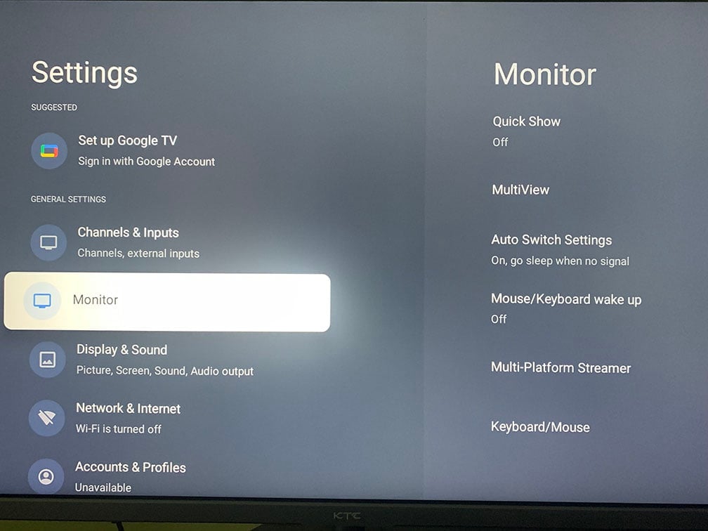 The KTC A32Q8 is based on Google TV / Android 11 smart OS, which we found to be quite responsive.