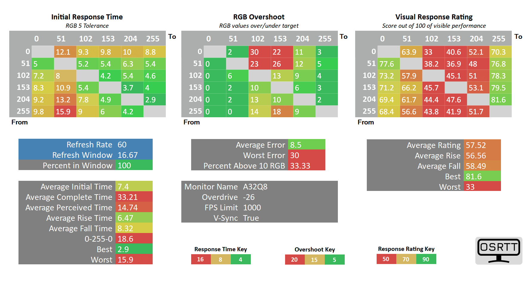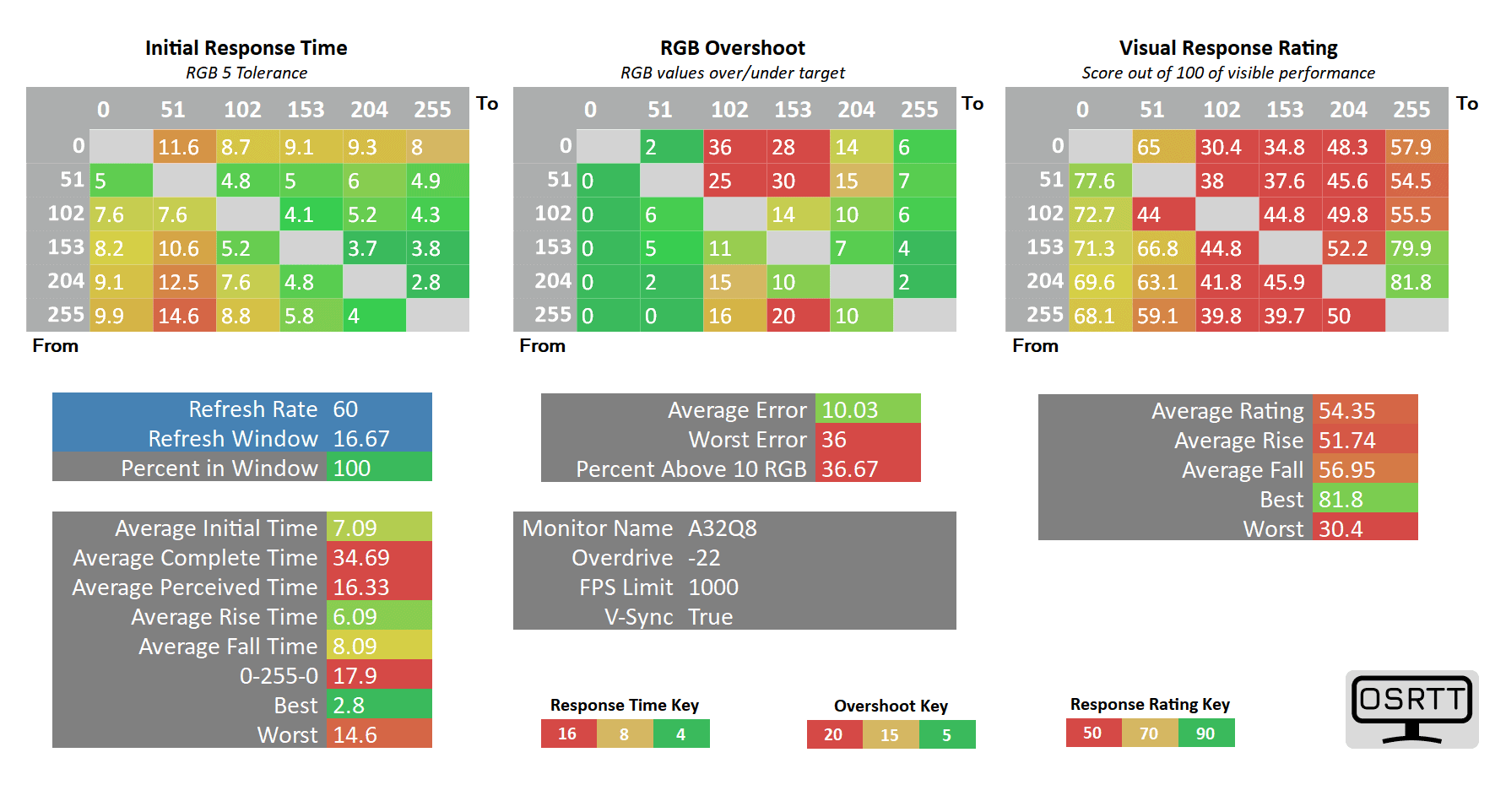 Lowering the overdrive to -26 reduces the average GtG pixel response time speed to 7.4ms from 7.09ms, but it also reduces the average overshoot error from 10.03% to 8.5%.
