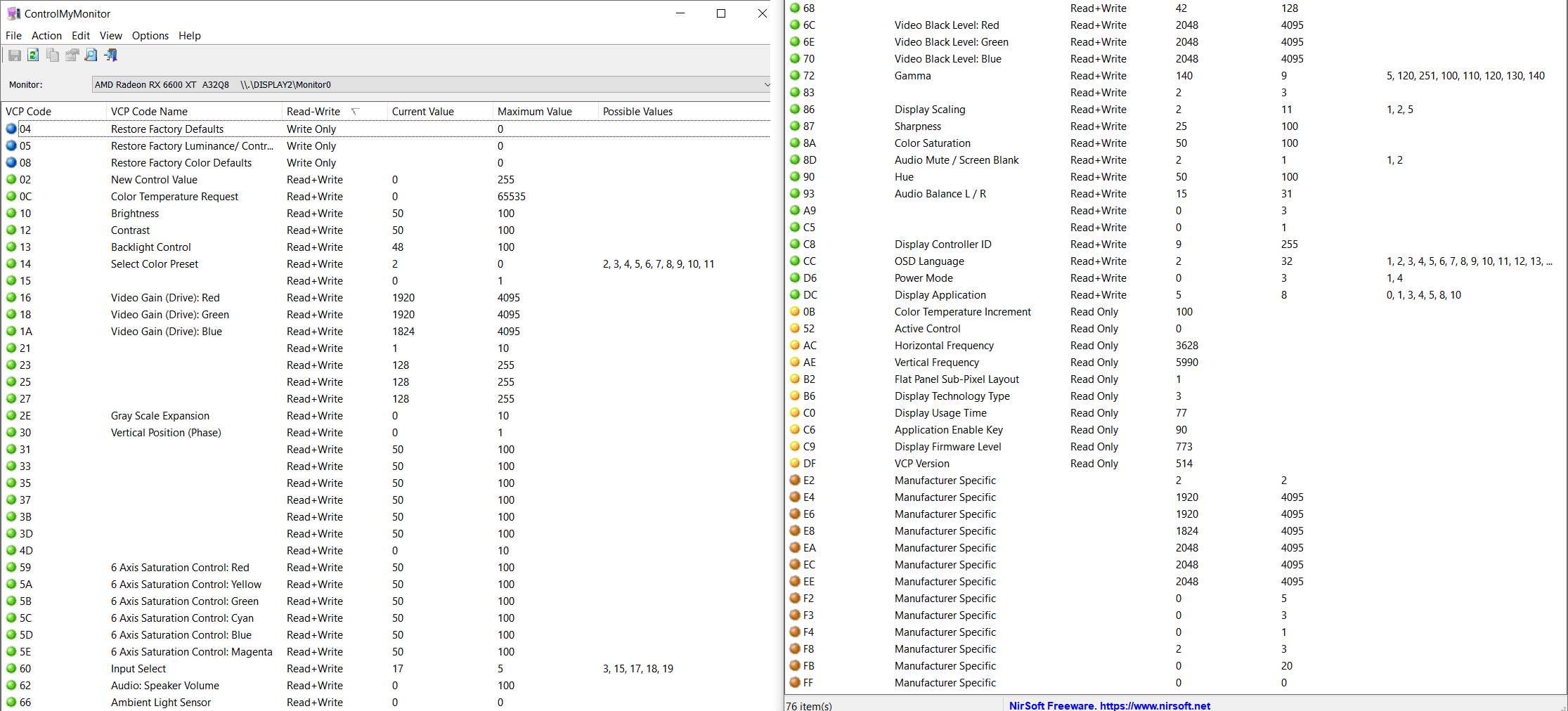 There’s no dedicated desktop application for OSD-related adjustments, but the monitor supports DDC/CI, so you can use third-party apps, such as ControlMyMonitor, to adjust the following settings: