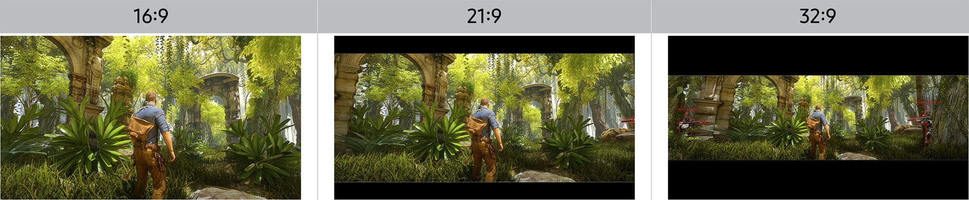 For instance, you can change the aspect ratio to 21:9 (3840×1600) or 32:9 (3840×1080) for a wider field of view in supported PC games. While this will display black bars at the top and bottom of the screen, the local dimming zones will make them entirely black, so they won’t be as distracting as they’d be on regular screens.