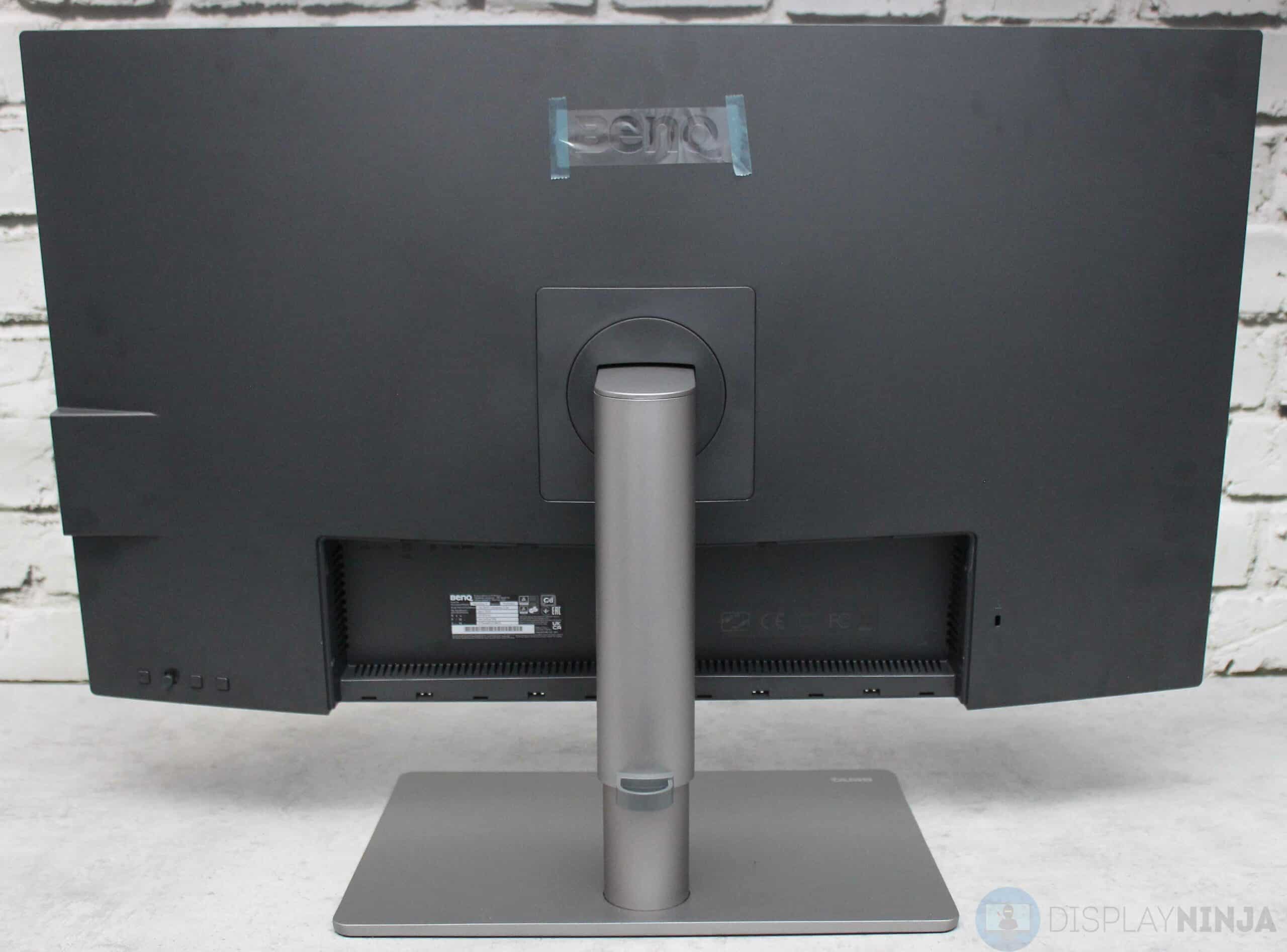 The base and stand of the BenQ PD3220U monitor are made of metal and are quite heavy and sturdy. The stand doesn’t take up a lot of your desk space as you can place items on it.