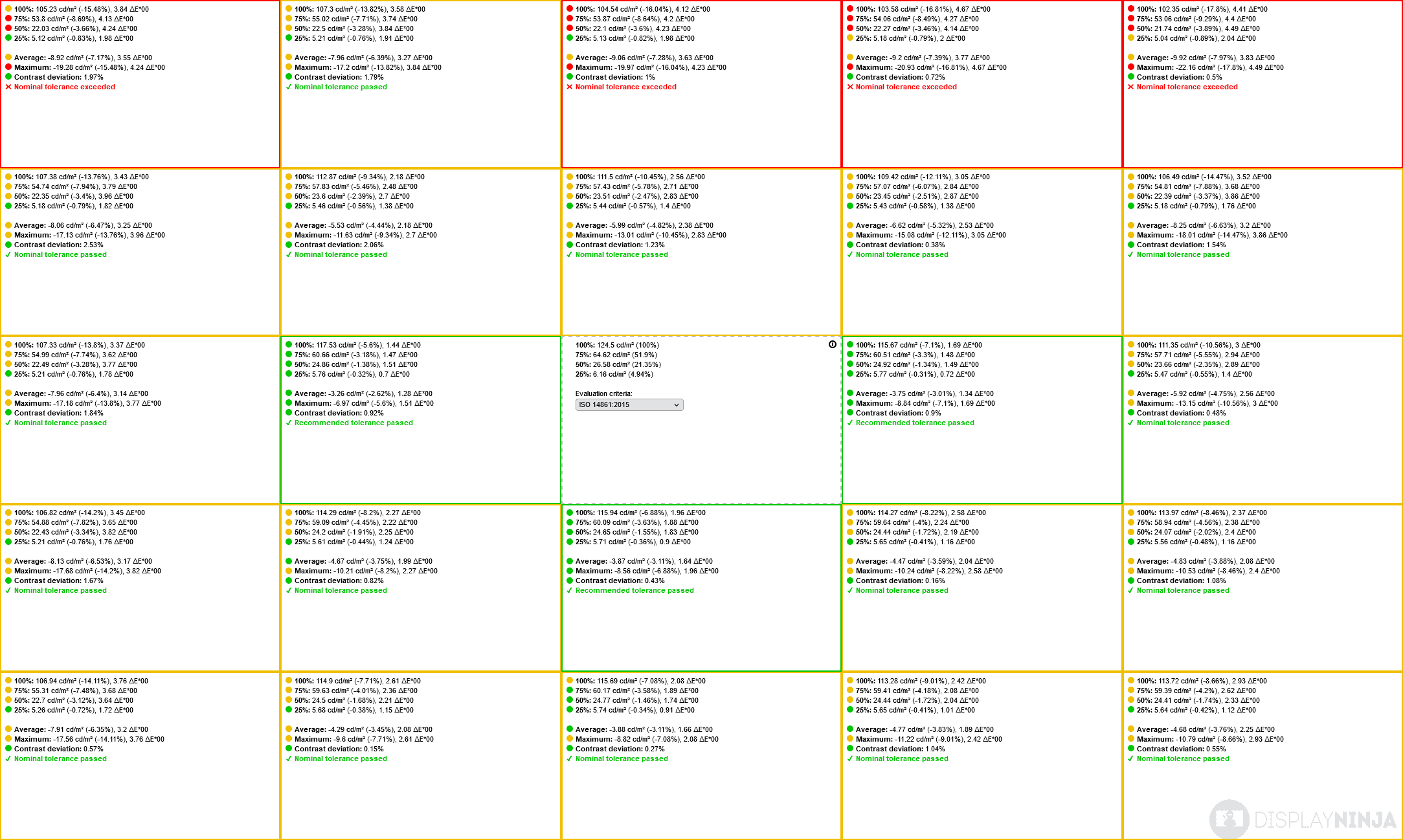 | Min. Brightness (nits) | 27 | 45 | 46 | 27 | 47 | 47 | 46 |