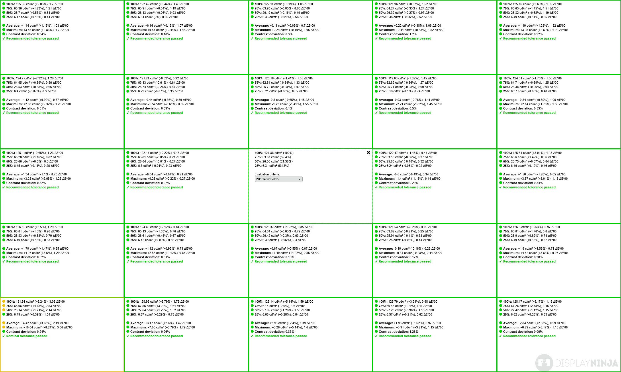 The contrast ratio is lower in the Display P3 and sRGB color modes due to the uniformity technology being enabled. Here’s how the monitor’s uniformity looks with and without this feature: