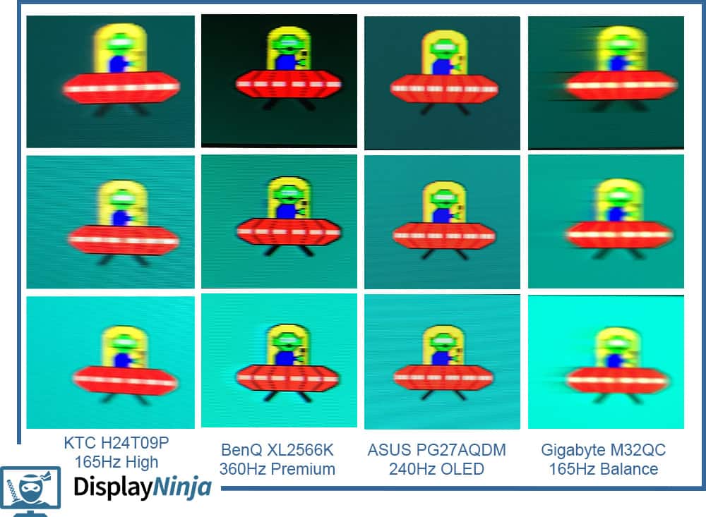 Here’s how the different overdrive modes look in the UFO ghosting test.