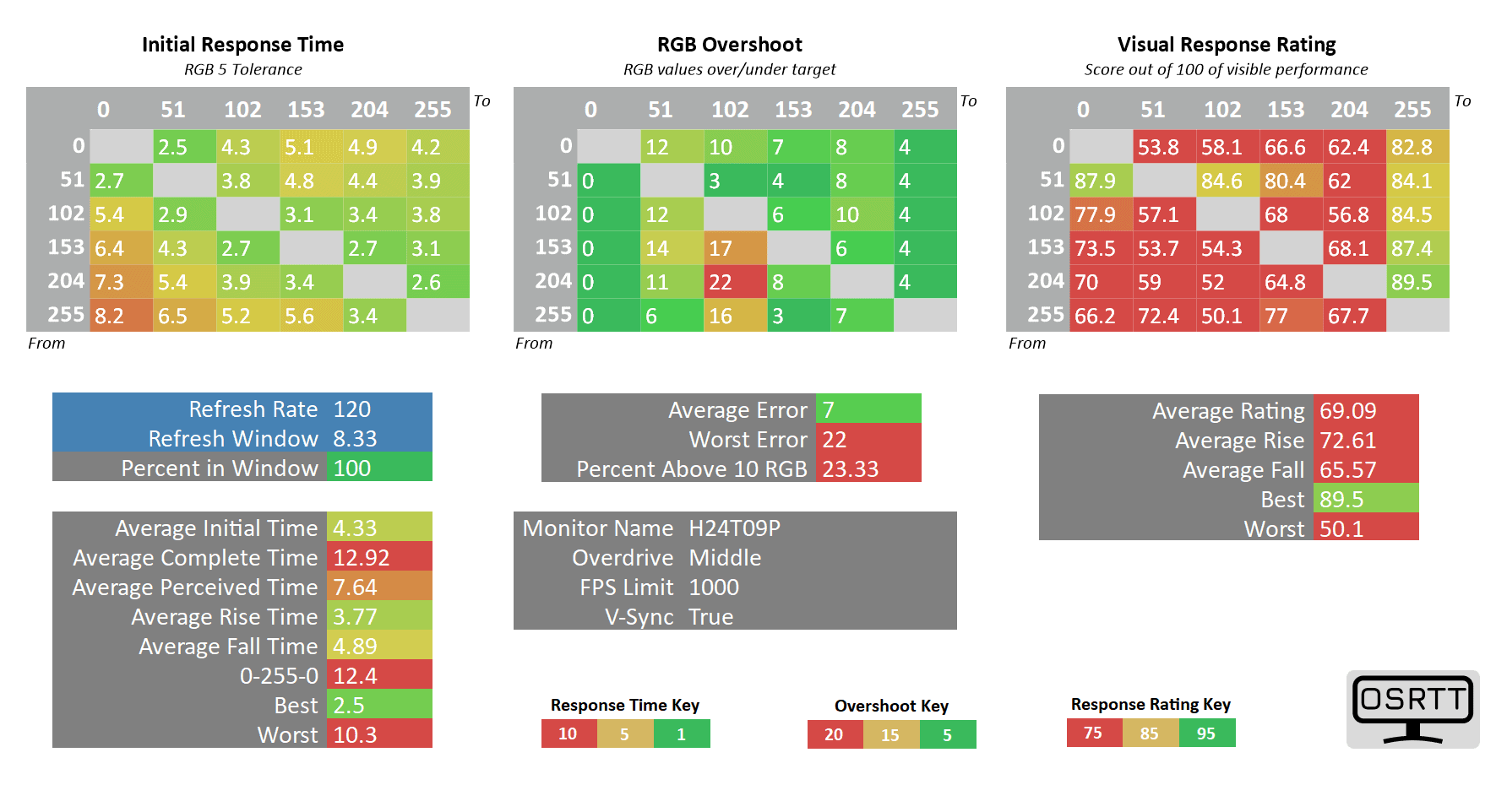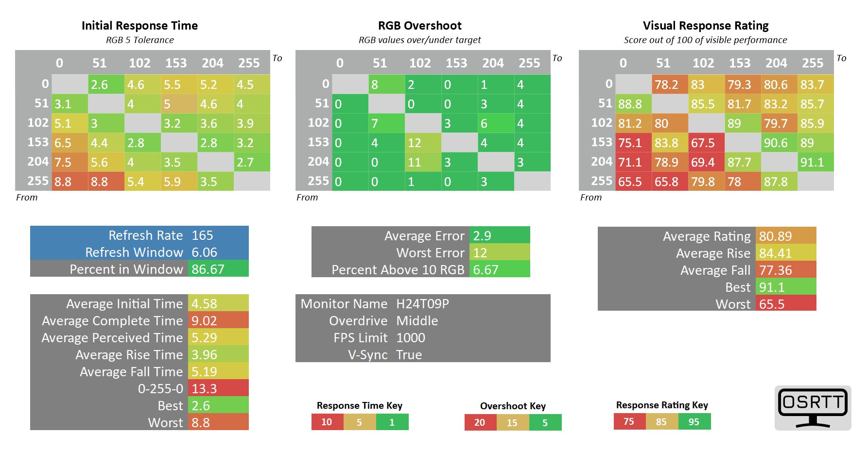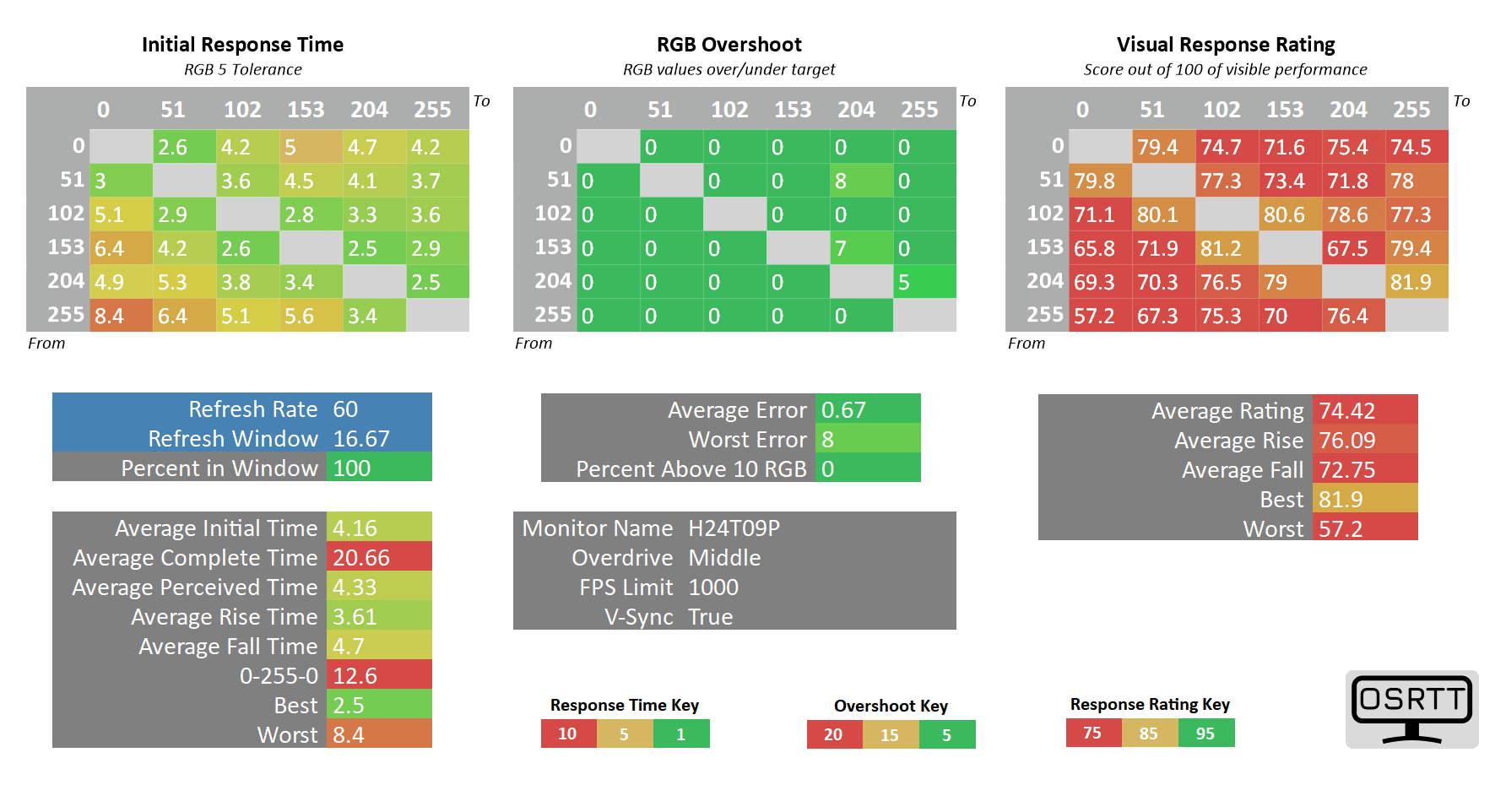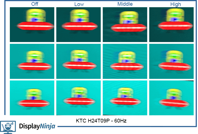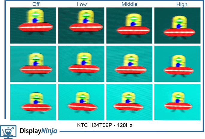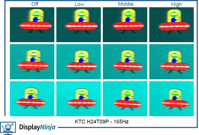 The KTC H24T09P has four response time overdrive modes: Off, Low, Middle and High.