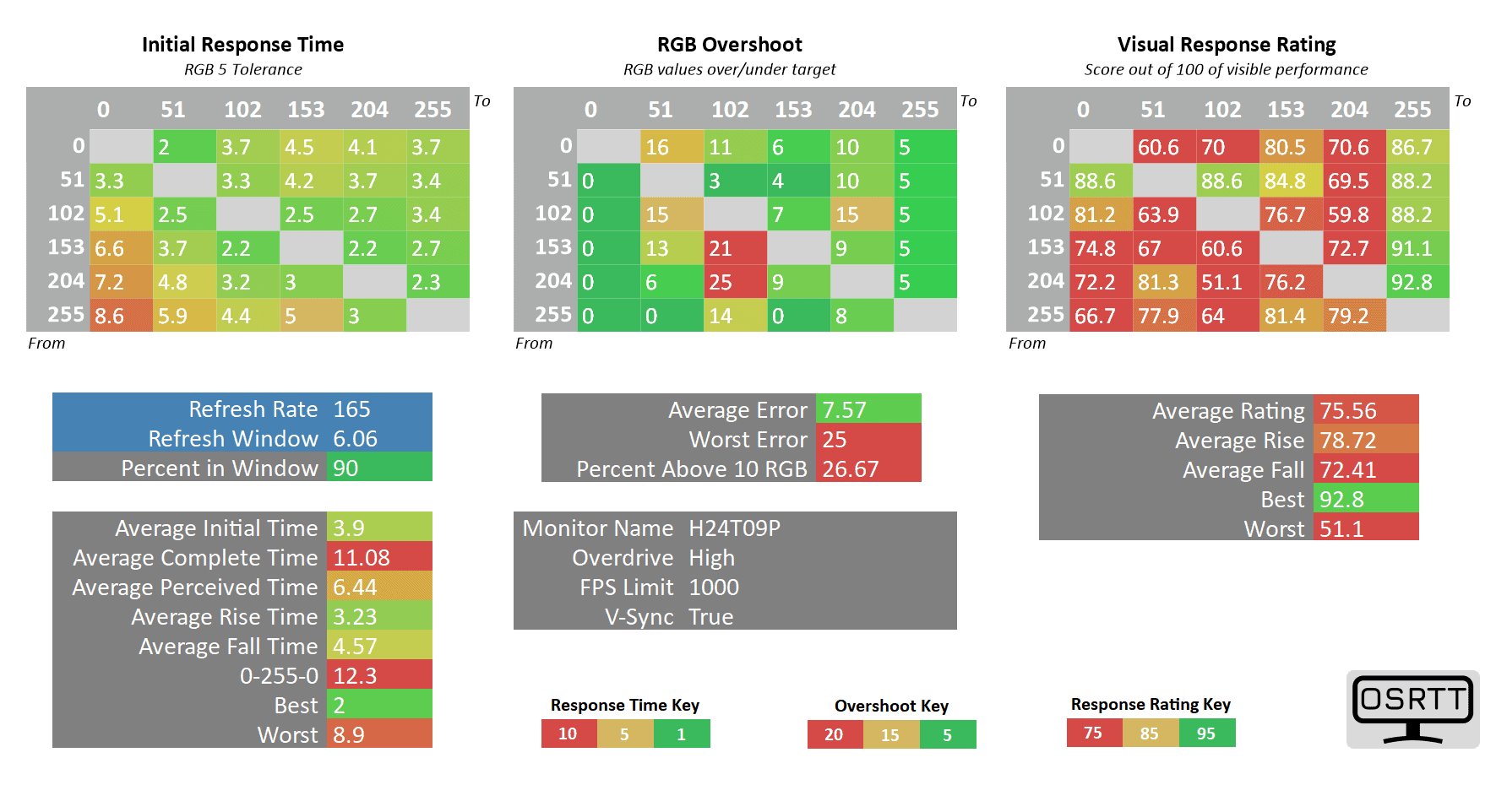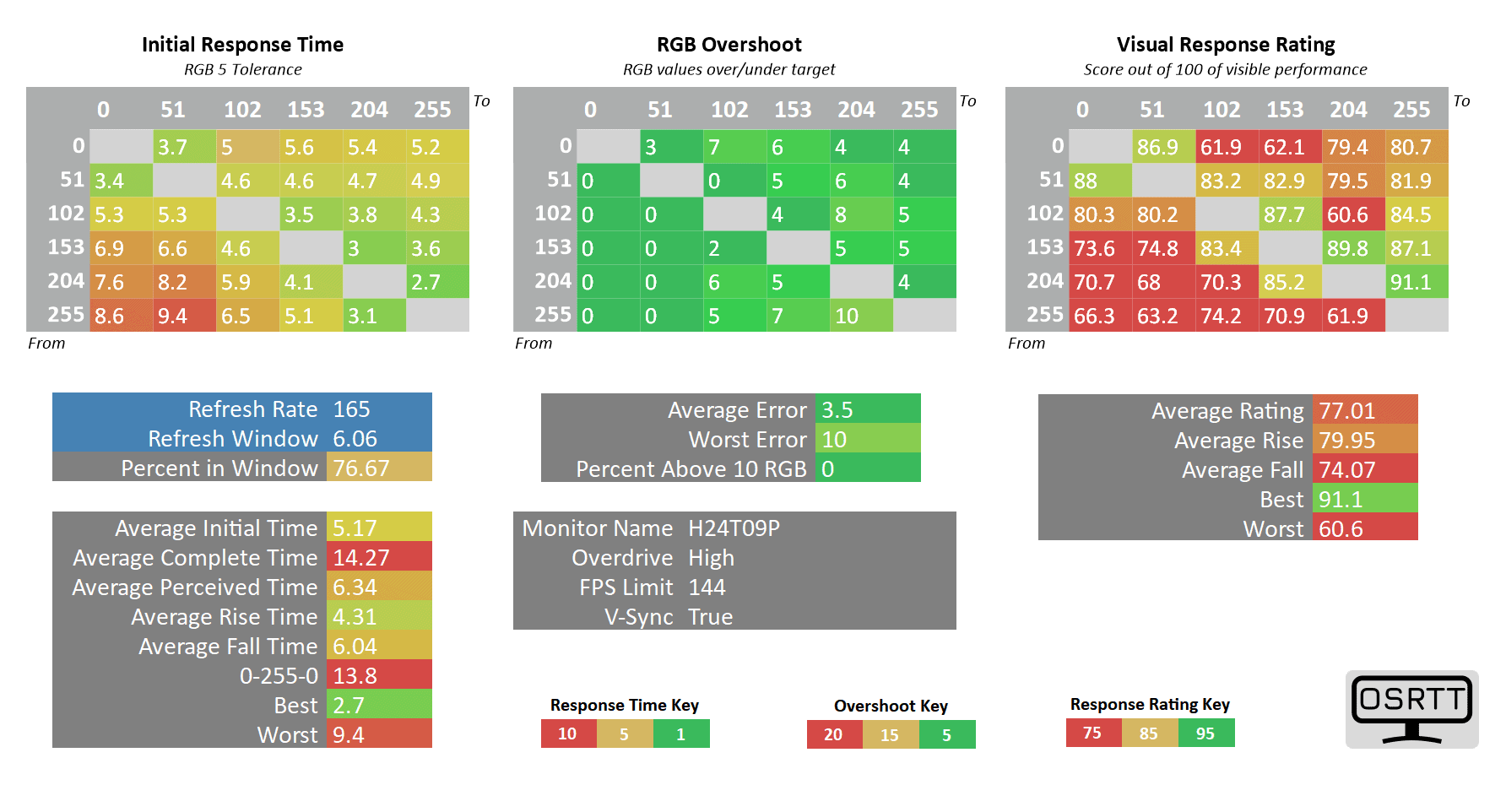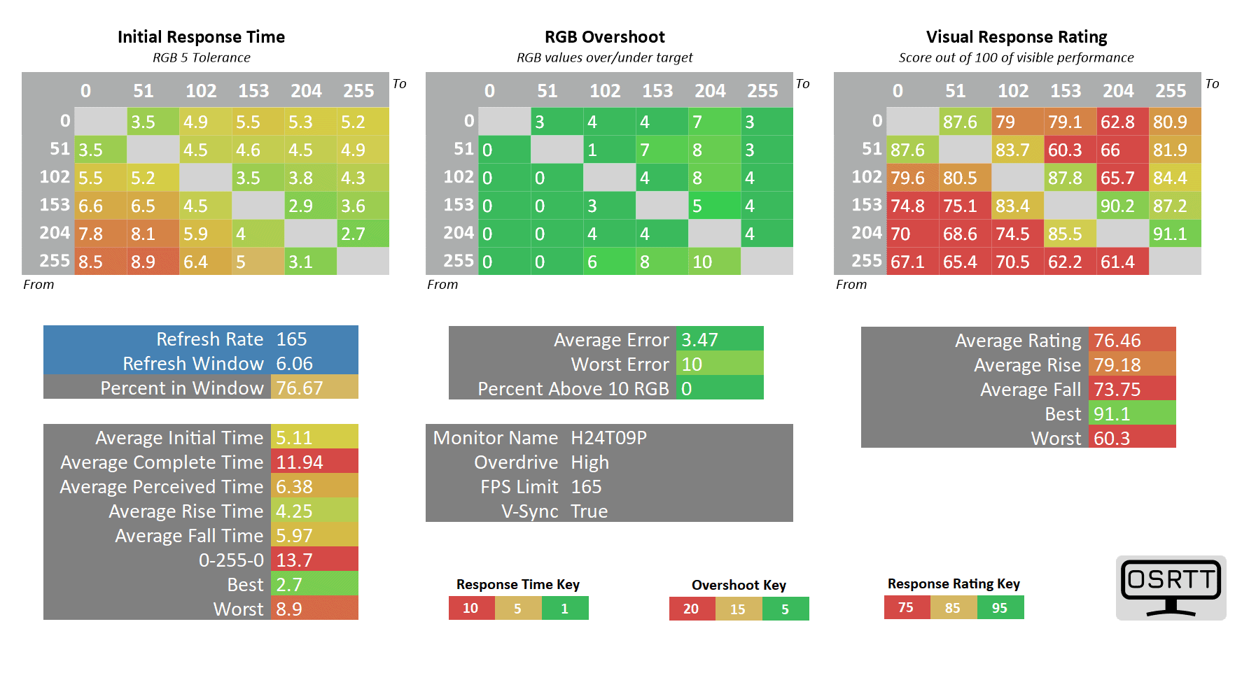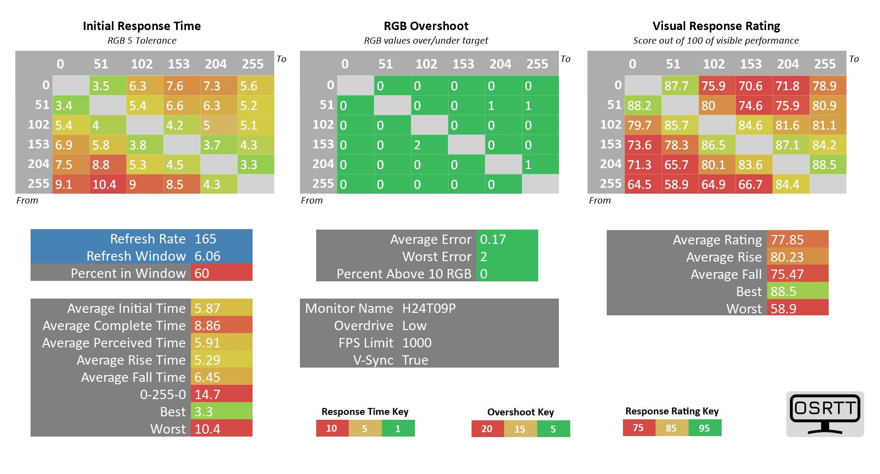 The KTC H24T09P has four response time overdrive modes: Off, Low, Middle and High.