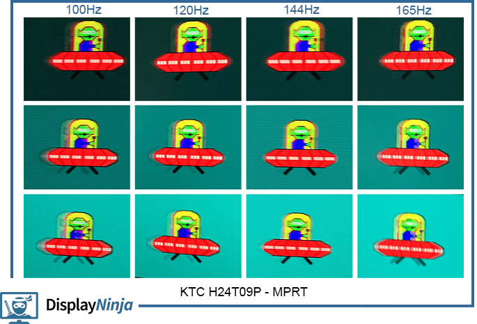 With MBR enabled, the brightness is reduced to 95-nits at 165Hz, 77-nits at 144Hz and 62-nits at 120Hz or 100Hz.