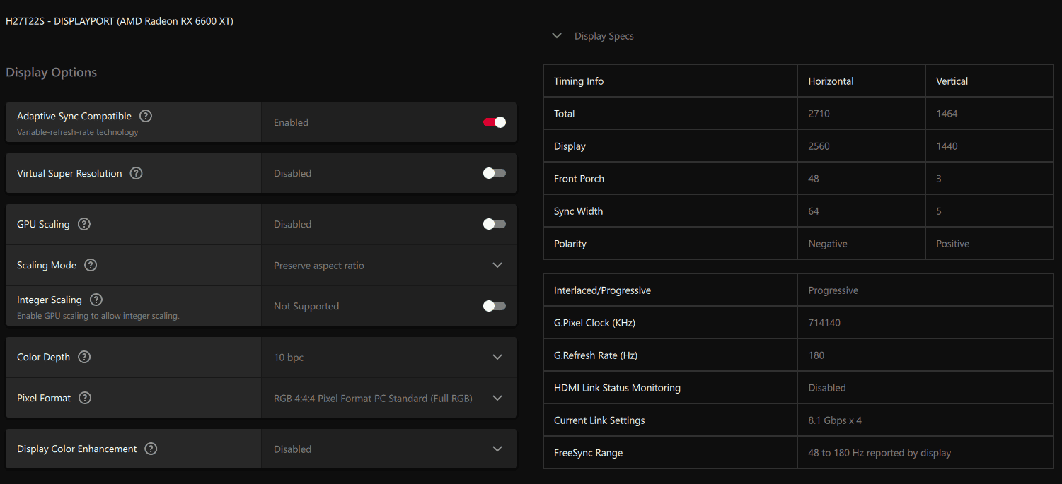 | Adaptive-Sync | FreeSync (48-180Hz) |