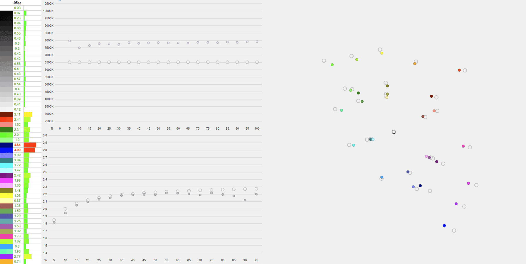 Gamma tracking has also improved to 2.22, the maximum Delta E is 1.23, and the average Delta E is just 0.34. You can download our ICC profile here.