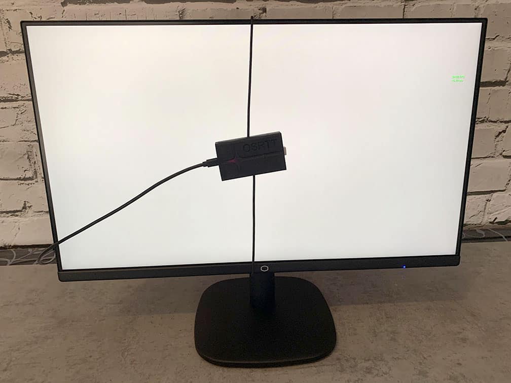 For pixel response time speed and input lag testing, we’re using OSRTT. We’re also using Blur Buster’s UFO ghosting test with 960 Pixels Per Sec, shutter speed set to 1/4 of the refresh rate with fixed focus, ISO and color temperature (6500K). Before the tests, the monitor was calibrated and warmed up.