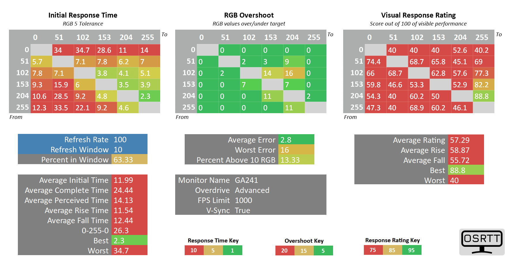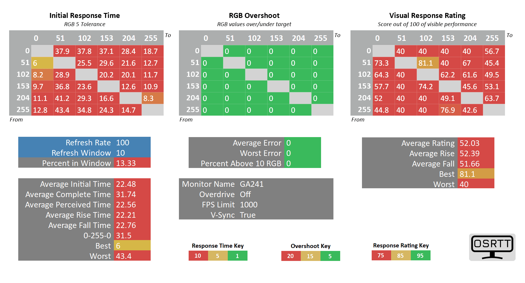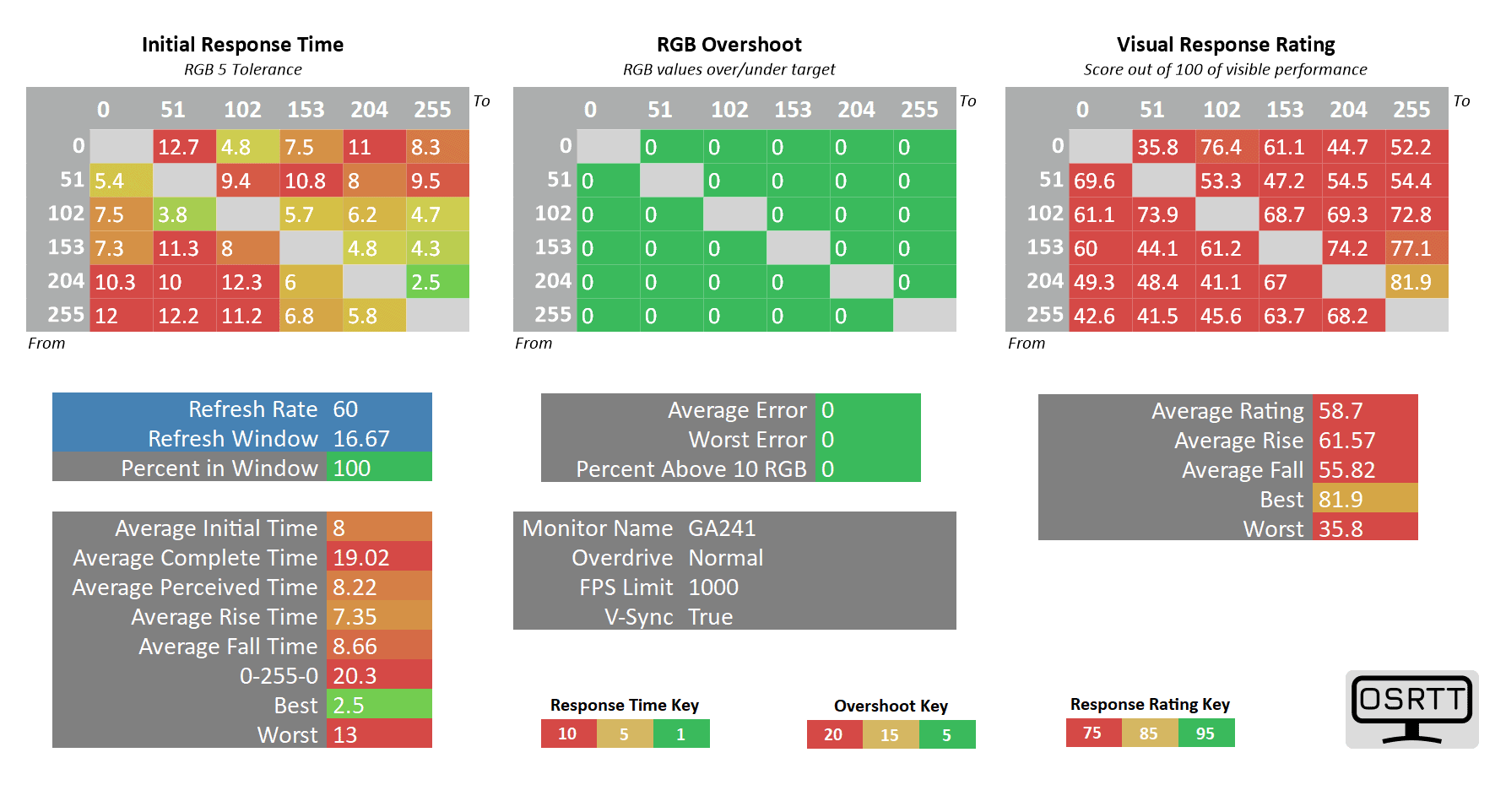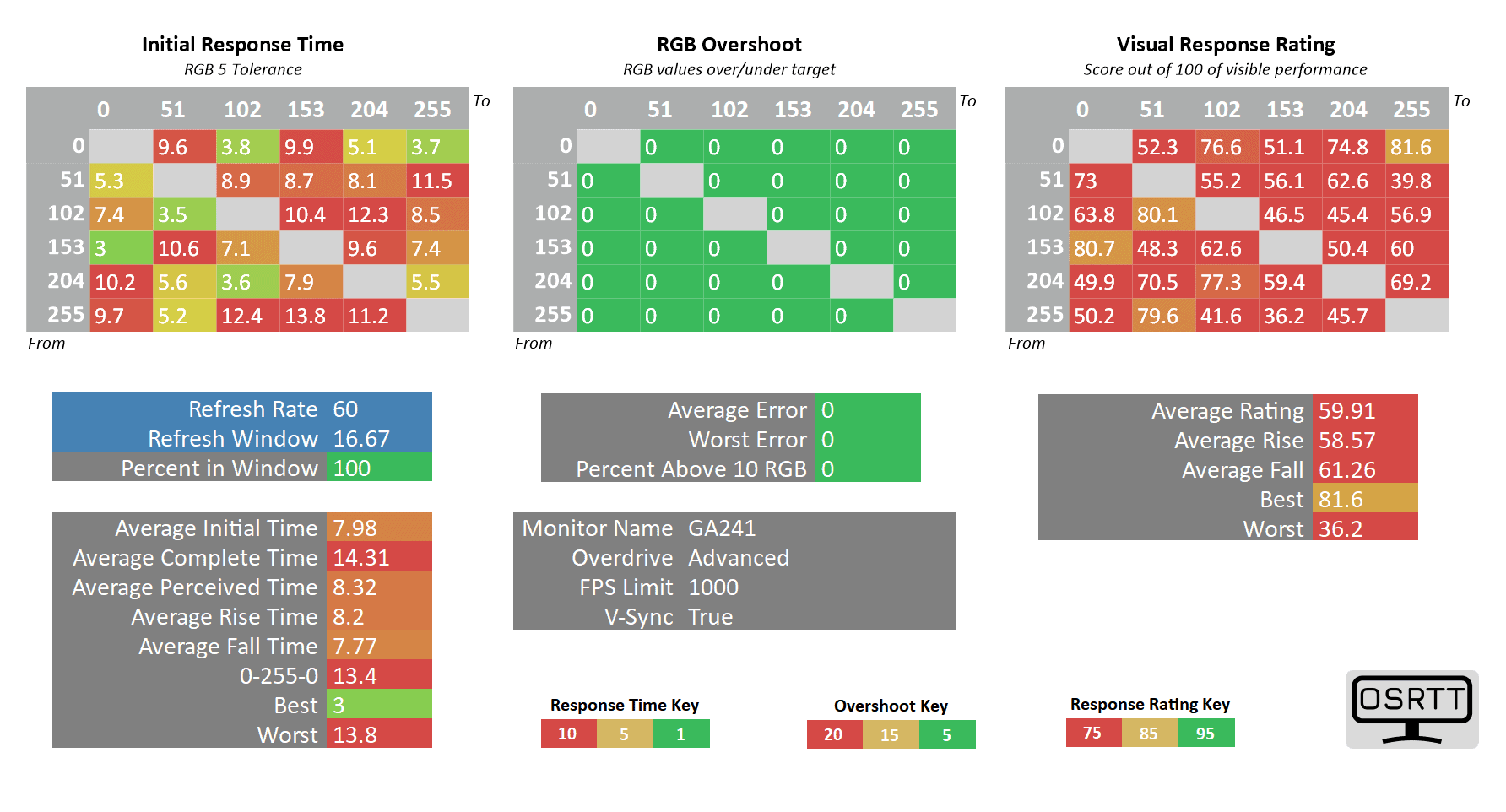 The Cooler Master GA241 has three response time overdrive modes: Off, Normal and Advanced.