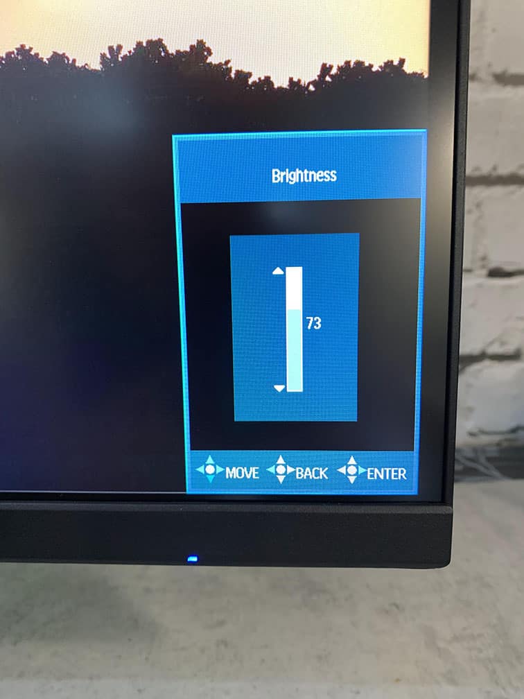 On the bottom bezel, there’s a blue LED power indicator that switches to red (blinking) when the screen’s on standby. The LED power indicator cannot be disabled but it’s not intrusive.