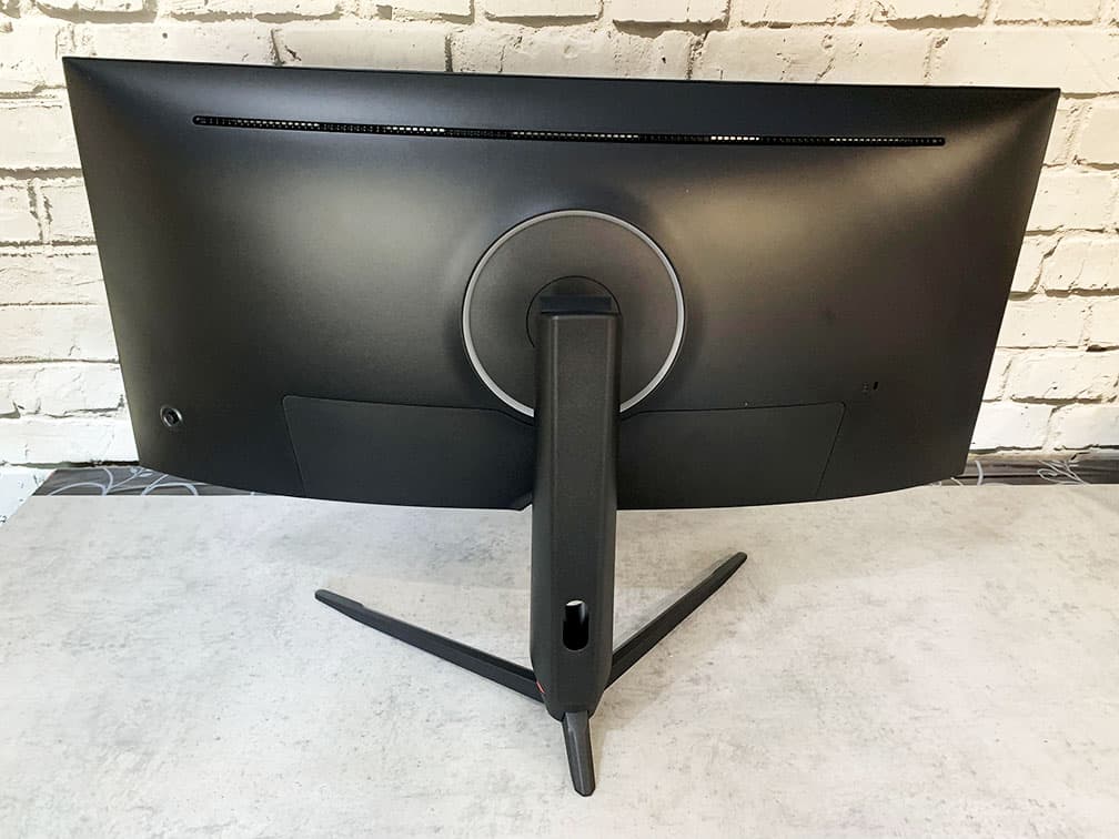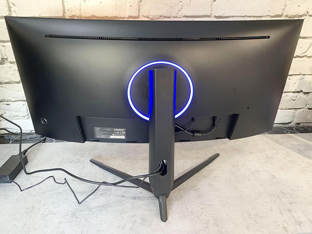 There are ventilation holes at the top of the screen, a cable management bracket, a magnetic cover for inputs and RGB LEDs at the rear of the monitor that gradually cycle through red, green, blue, yellow, cyan and magenta colors – it can also be disabled.