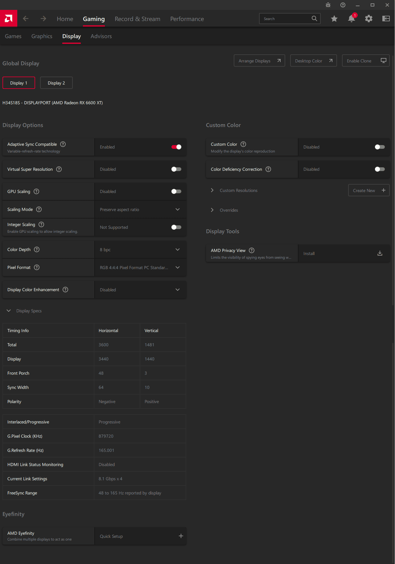 | Adaptive-Sync | FreeSync Premium (48-165Hz) |