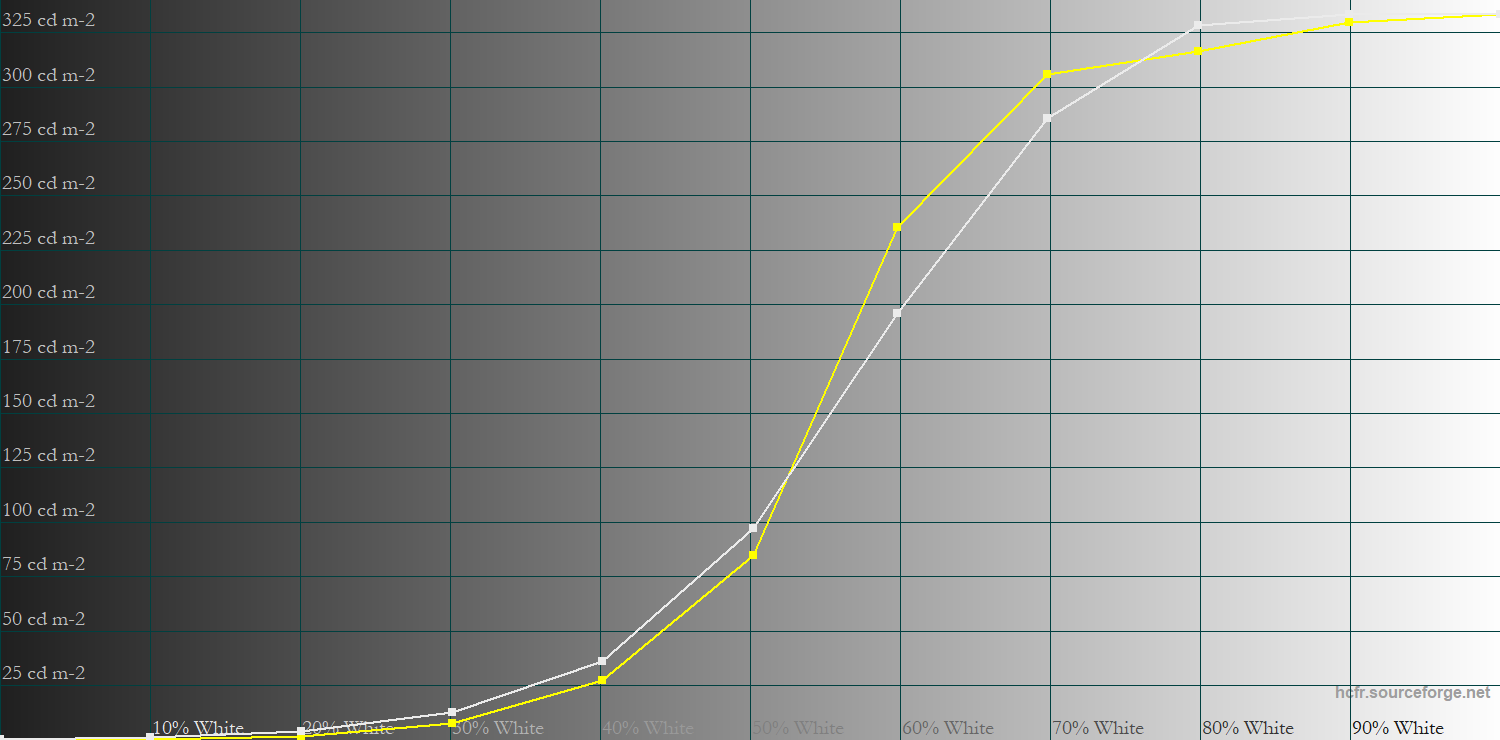 Next, gamma tracking of the default Gamma 2.2 mode is decent with an average of 2.09 (target is 2.2), meaning that most scenes will be slightly brighter than intended.